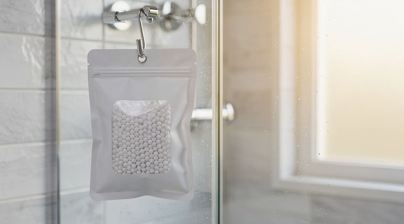 A hanging dehumidifier bag, typically filled with silica gel or crystal compounds, does exactly what its name suggests: it pulls moisture from the air. Place one directly by the shower rail, and you’re essentially positioning a moisture guard at the point where steam is densest. The bag fills with water over time—visible proof that something is actually working. A DIY alternative made from a breathable fabric pouch filled with rock salt, silica beads, or even baking soda achieves the same effect at a fraction of the cost.
